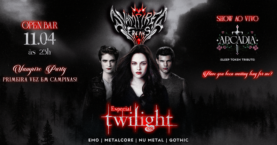 [CAMPINAS] Vampire Freaks • ESPECIAL TWILIGHT | OpenBar & Show Banda Arcadia (Sleep Token Cover) • 11/04/2026
