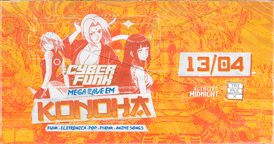 CyberFunk • Mega Rave em Konoha • Funk.Eletrônica.Pop.Phonk.AnimeSongs • Sábado, 13/04/24 no TRIPLEX em São Paulo!